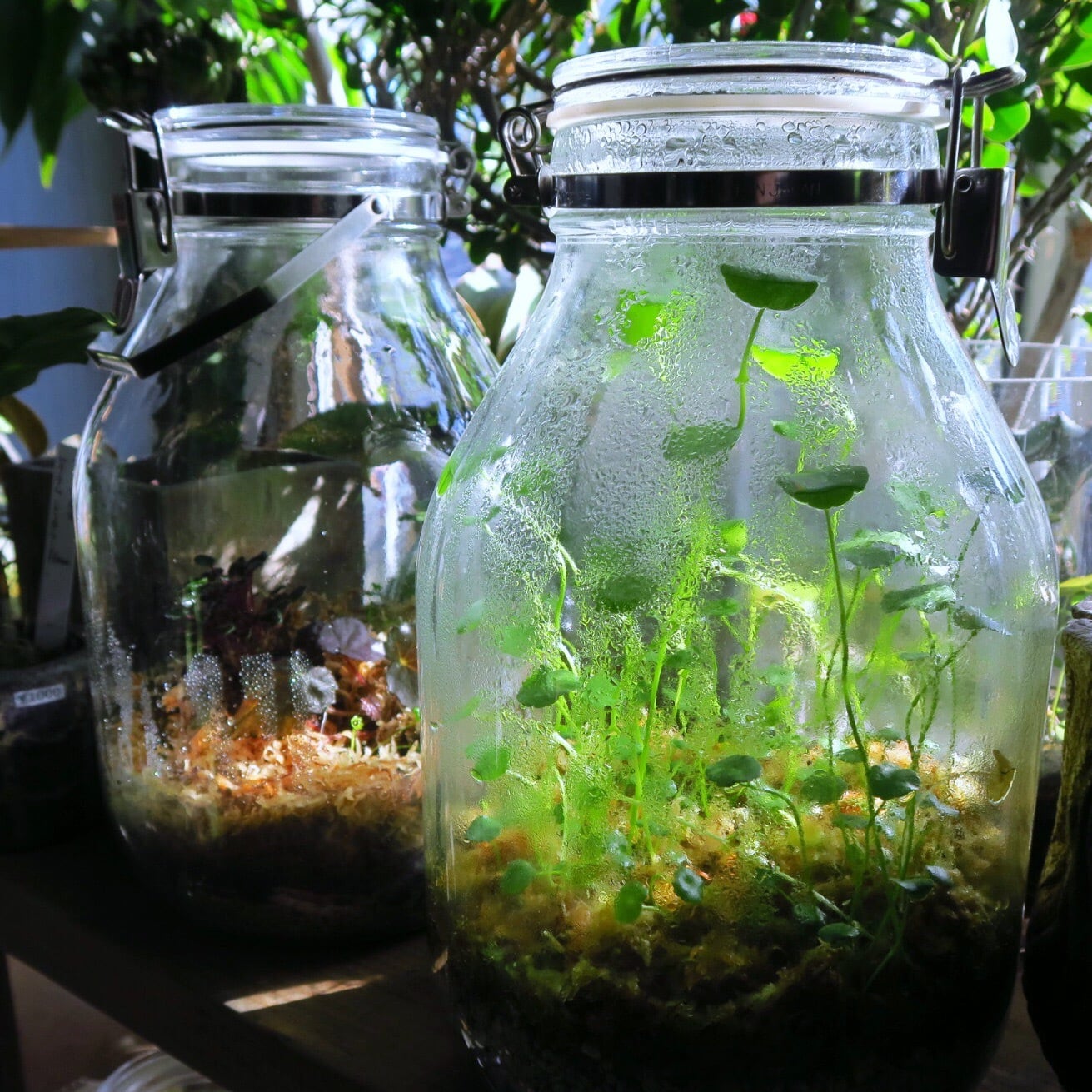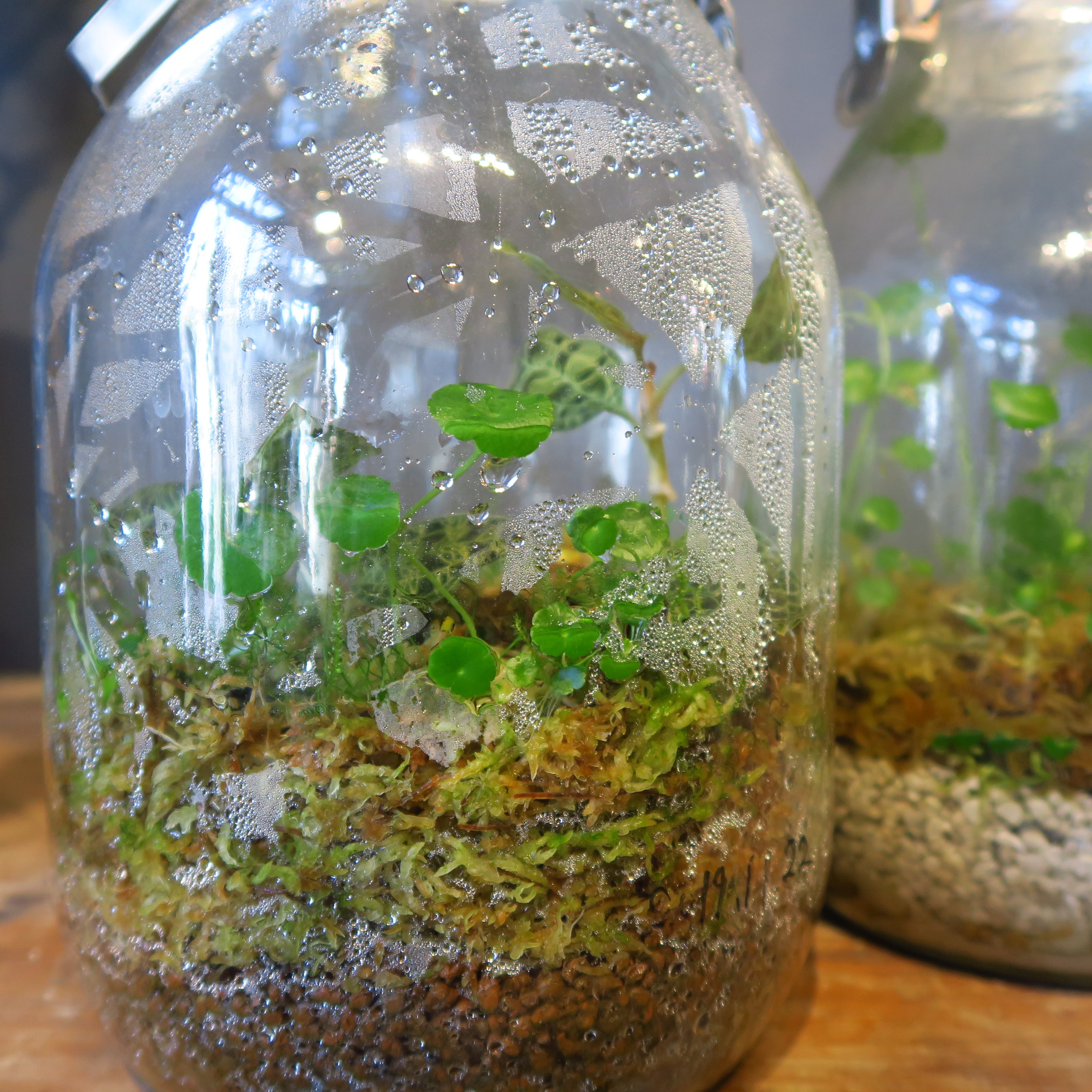 それでも瓶の中でめくるめく生態系が繰り広げられ、成長したり枯れたり、また成長したり。