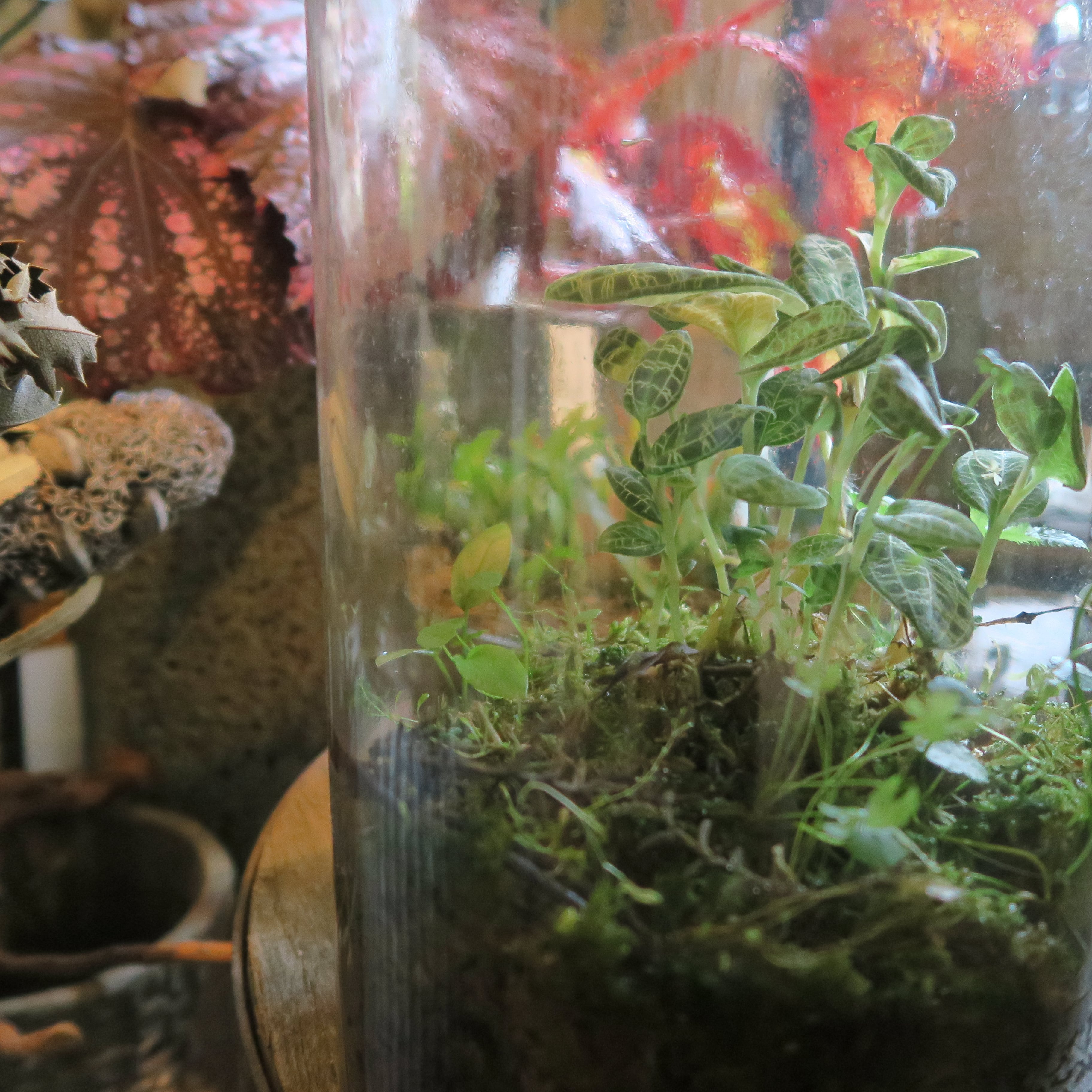 それでも瓶の中でめくるめく生態系が繰り広げられ、成長したり枯れたり、また成長したり。